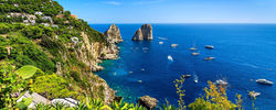 Desayuno en el hotel. Embarque en jet foil que nos llevará hasta la magnífica isla de Capri, lugar de descanso de emperadores romanos, que sorprende por su paisaje de farallones y grutas. Destacan la Marina Grande y los múltiples puntos escénicos desde donde se disfruta de espectaculares vistas. Almuerzo libre. Regreso en jet foil a Nápoles. Cena y alojamiento en el hotel.